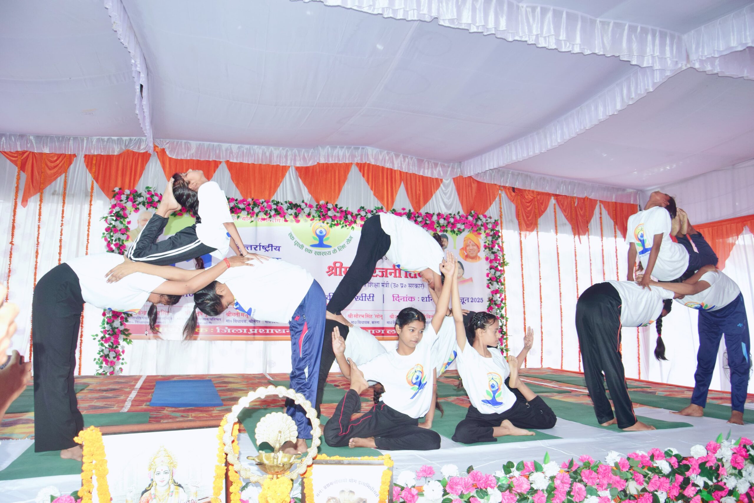 जिला मुख्यालय आयोजित भव्य कार्यक्रम में योगाचार्या प्रगति बरनवाल के कुशल निर्देशन में बच्चों ने शिव तांडव स्तोत्रम् की दिव्य धुन पर आकर्षक योग प्रदर्शन प्रस्तुत किया। हर आसन में समर्पण, लय और संतुलन की झलक दिखाई दी, जिसने दर्शकों को मंत्रमुग्ध कर दिया।