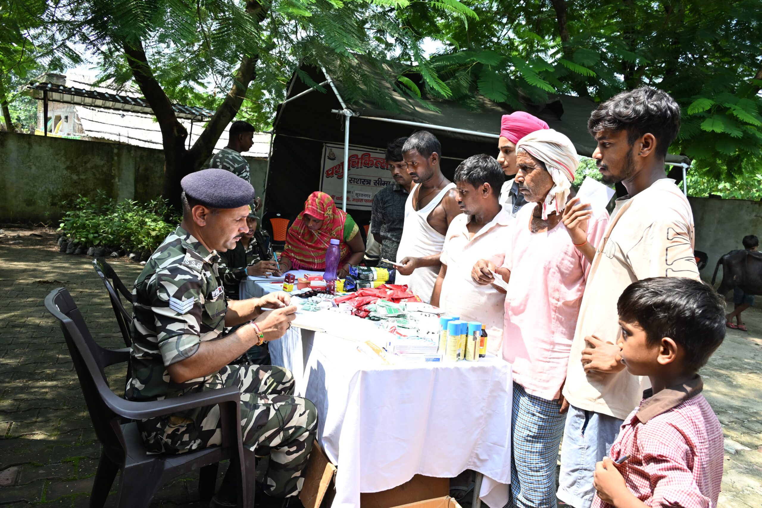 70वी वाहिनी सशस्त्र सीमा बल लखीमपुर खीरी द्वारा नागरिक कल्याण कार्यक्रम के अंतर्गत राजन कुमार श्रीवास्तव कमांडेंट के दिशा निर्देशन में आज डॉ. सौरभ सिंघई, पशुचिकित्सा अधिकारी, नीम गांव लखीमपुर खीरी, के सहयोग से 70वी वाहिनी के कार्यक्षेत्र के अंतर्गत “डी”समवाय के AOR में नि:शुल्क पशुचिकित्सा शिविर (VCA) का आयोजन किया गया है। आयोजित शिविर में पशुओं का स्वास्थ्य परीक्षण कर दवाइयां वितरित की गई जिसमें 81 जानवरों का मुफ्त जांच कर निःशुल्क दवा दी गई । डॉ. सौरभ सिंघई, पशुचिकित्सा अधिकारी, ने ग्रामवासियों को जानवरों को बरसात के मौसम में होने वाली बिमारियों से बचाव के उपाय बताए । इस मौके पर वाहिनी से पहुंची पशुचिकित्सा टीम सहित “डी” समबाय प्रभारी प्रदीप कुमार सहायक कमांडेंट तथा अधीनस्थ अधिकारी व बलकर्मिक उपस्थित थे।