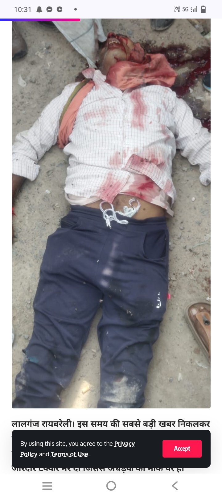 लालगंज कोतवाली क्षेत्र के अंतर्गत रेल कोच फैक्ट्री के पास बोलेरो की टक्कर से गरीब मजदूर की मौके पर दर्दनाक मौत मृतक की पहचान रामस्वरूप 52 वर्ष पुत्र बद्री प्रसाद कानमऊ के रूप में हुई है हादसे के बाद शव को रखकर कर्मचारियों ने जाम लगा दिया सूचना पाकर मौके पर पुलिस पहुंची और आक्रोशित लोगों को समझने का प्रयास किया हादसे के क्षेत्र में ग़म का माहौल है