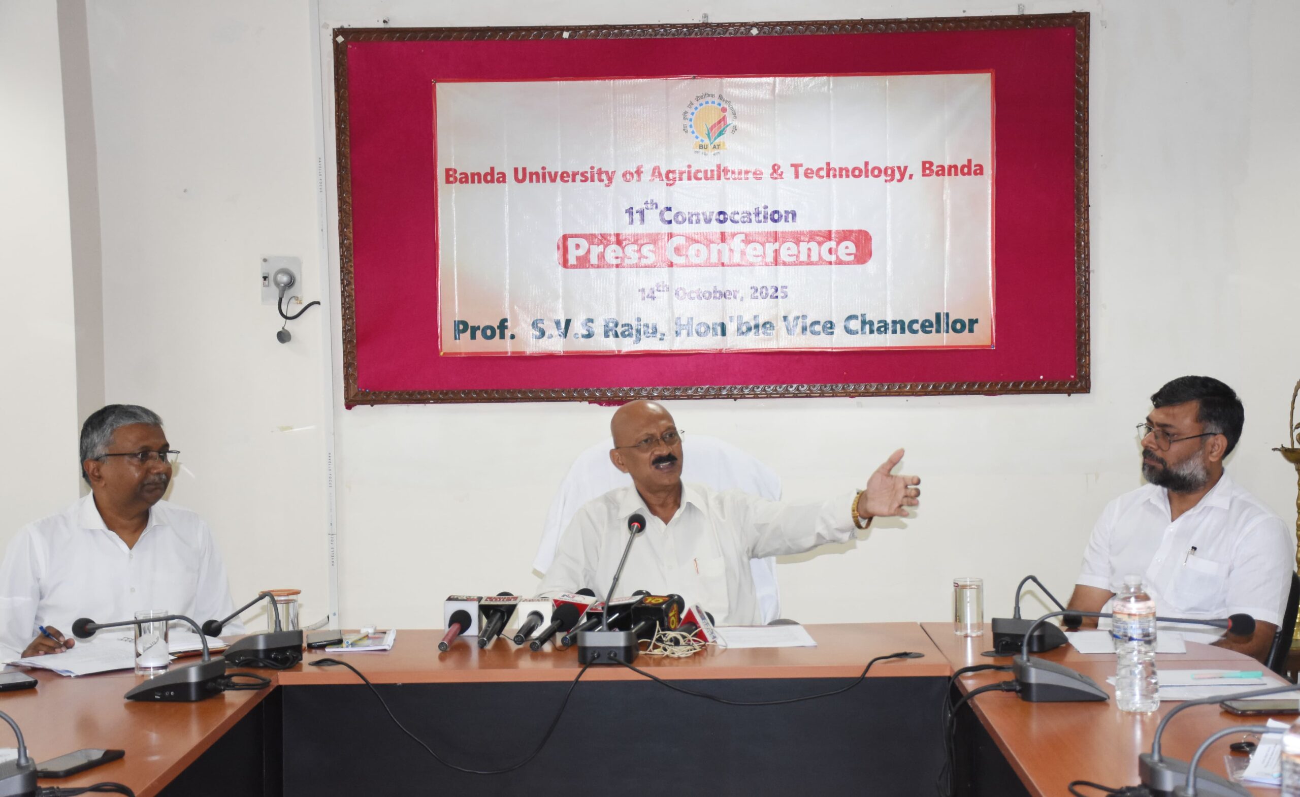 बांदा। बांदा कृषि एवं प्रौद्योगिकी विश्वविद्यालय का 11वां दीक्षांत समारोह गुरुवार 16 अक्टूबर को धूमधाम से मनाया जाएगा। समारोह की अध्यक्षता प्रदेश की राज्यपाल कुलाधिपति आनंदीबेन पटेल करेंगी, जबकि कार्यक्रम में मुख्य अतिथि के रूप में भारतीय कृषि अनुसंधान संस्थान के निदेशक व कुलपति अंतर्राष्ट्रीय ख्याति प्राप्त मृदा वैज्ञानिक डा.चेरूकुमल्ली श्रीनिवास राव शामिल होंगे। दीक्षांत समारोह में कृषि, उद्यान, वानिकी और सामाजिक विज्ञान महाविद्यालयों के 240 छात्र-छात्राओं को स्नातक, 87 विद्यार्थियों को स्नातकोत्तर और 15 पीएचडी शोधार्थी छात्रों को उपाधियां वितरित की जाएंगी। समारोह में सात छात्राओं समेत 19 विद्यार्थियों को मेडल और बीएससी ऑनर्स कृषि के अंश सक्सेना को चांसलर गोल्ड मेडल से नवाजा जाएगा। विश्वविद्यालय के कुलपति प्रो.एसवीएस राजू ने विश्वविद्यालय की उपलब्धियां साझा करते हुए पत्रकारों को तमाम आवश्यक जानकारियां दीं।