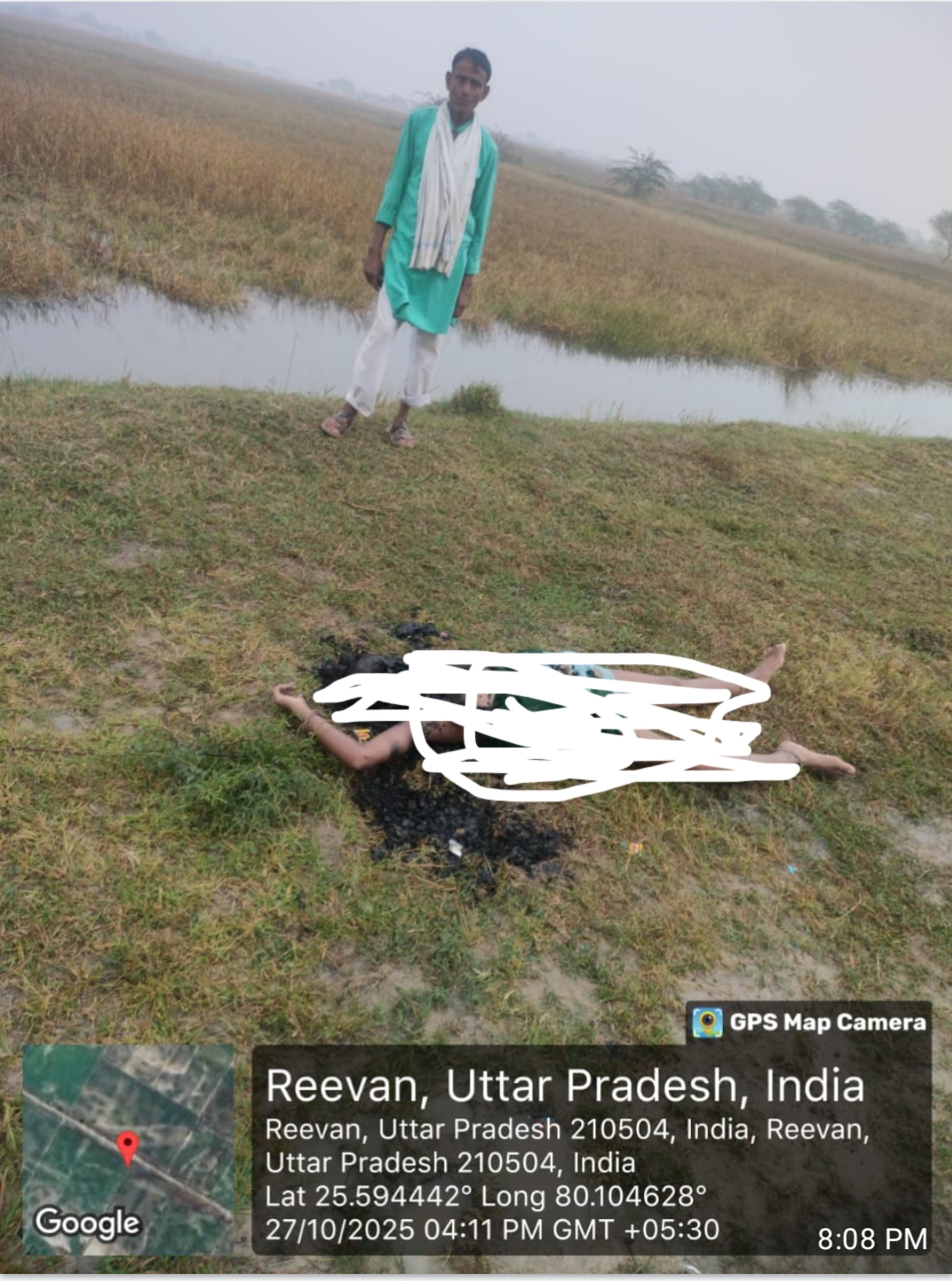 कोतवाली क्षेत्र के गांव रीवन से करहिया गांव के रास्ते में स्थित कृषि उत्पादन मंडी समिति के नजदीक खेतों में सोमवार की दोपहर जानवर चरा रहे चरवाहों की नजर अचानक एक महिला के अधजले शव में पड़ी।जिसकीे खबर गांव में जंगल की आग की तरह फ़ैल गई। घटना स्थल पर ग्रामीणों की भीड़ उमड़ पड़ी। घटना की सूचना ग्राम प्रधान ने कोतवाली पुलिस को दी गई। सूचना पर पहुंची कोतवाली पुलिस ने शव को कब्जे में लेकर जांच पड़ताल शुरू कर दी है। महिला के शव में हरे रंग की साड़ी है और बांए हाथ की हथेली के पिछले हिस्से में ओम तथा व बाएं हाथ की कलाई पर हिंदी अक्षरों से गायत्री लिखा हुआ है। महिला के दोनों हाथों में सुनहरी मोतीदार प्लास्टिक की चूड़ी एवं दोनों पैरों में पायल व बिछियां हैं।इसकी उम्र का अंदाजा लगभग 25 से 32 वर्ष लगाया जा रहा है। इस बात की आशंका जताई जा रही है कि महिला के साथ दुष्कर्म करने के बाद पहचान छिपाने के लिए उसका चेहरा जलाकर उसे अर्धनग्न अवस्था में खेतों में फेंक दिया गया है। फिलहाल इस घटना से क्षेत्र में दहशत व्याप्त है क्षेत्र में तरह तरह की चर्चाएं हो रही हैं वही मृतका की शव की शिनाख्त खबर लिखे जाने तक नहीं हो पाई घटनास्थल पर कोतवाली प्रभारी दलबल के साथ मौजूदगी देखी गई।